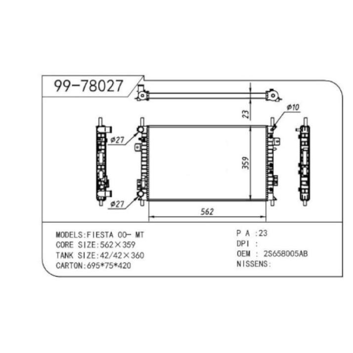 Radiador Ford Fiesta Automático con y sin AC 2003 al 2012